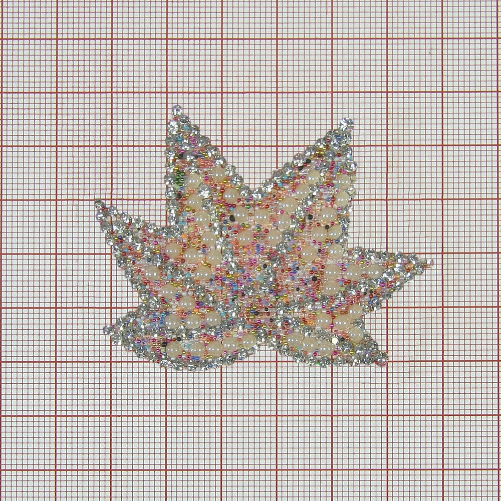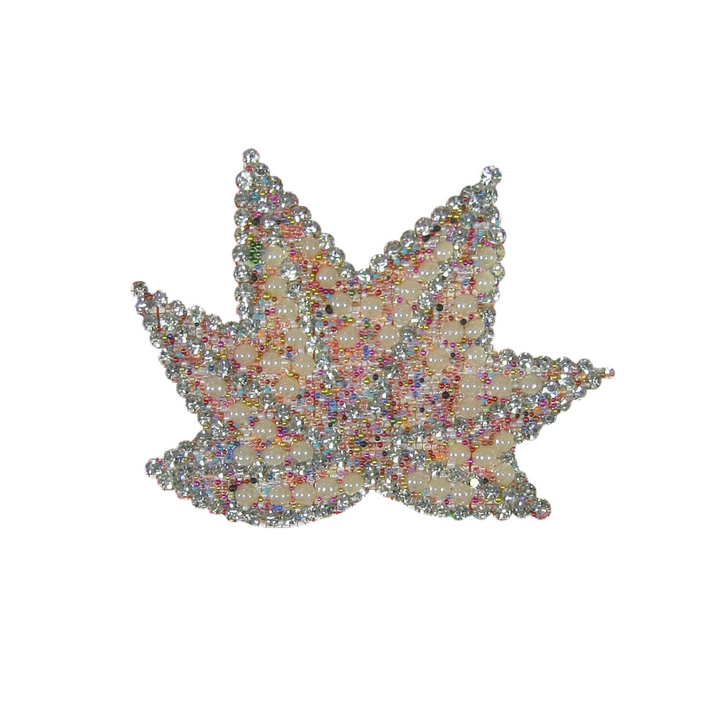 Аппликация клеевая стразы Клен 63*50мм цветной, светло-розовый жемчуг 2,2мм, белый 2мм, шт