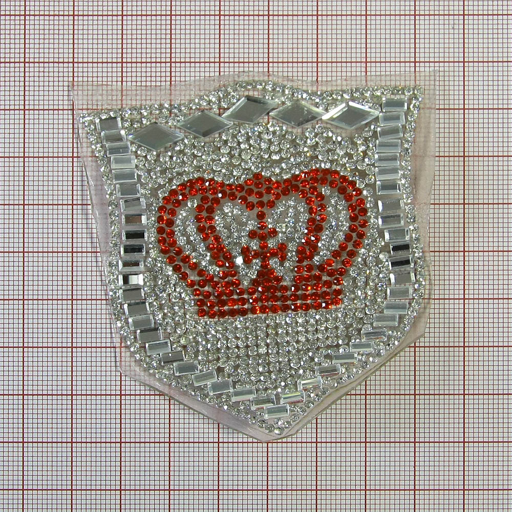 Аппликация клеевая стразы Корона красная герб 7*8см красные, белые мелкая россыпь, шт