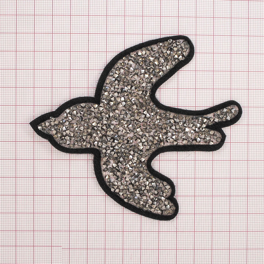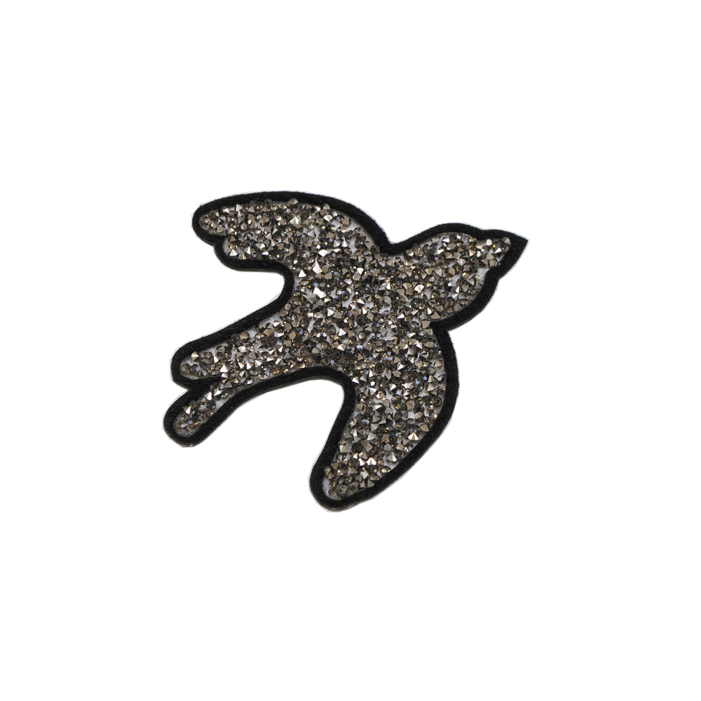 Аппликация клеевая стразы Ласточка 12*10см черный, камни дымчатый белый, шт.