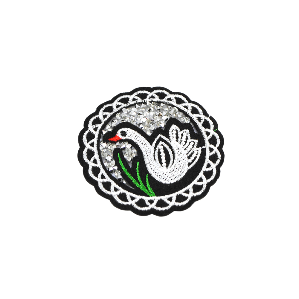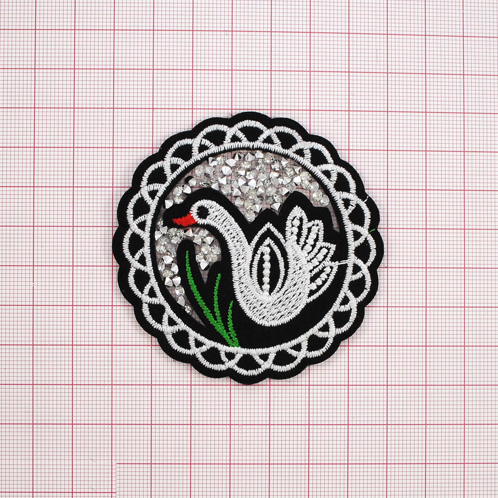 Аппликация клеевая стразы Лебедь 7*7см белый, черный, красный, зеленый, камни белый, шт.