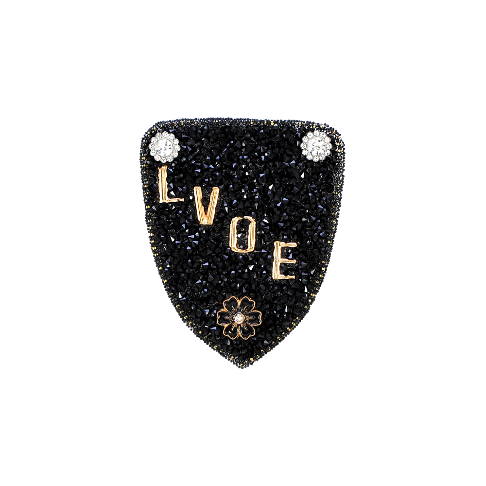 Аппликация клеевая стразы LOVE, 7.5*6см, черный, белый, золото, шт