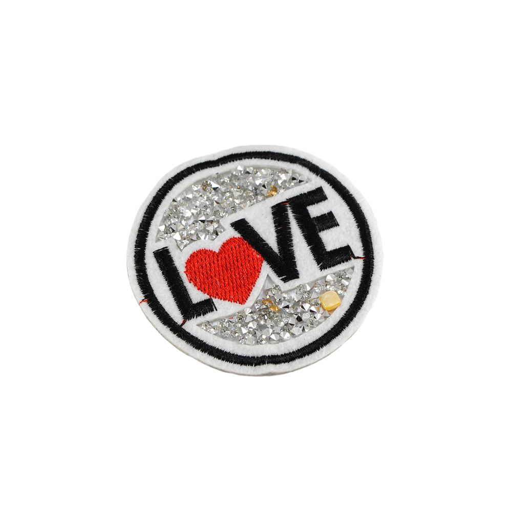 Аппликация клеевая стразы LOVE с сердцем 7*7см черный, белый, красный, камни белые, зеленый, красный, фиолетовый, шт