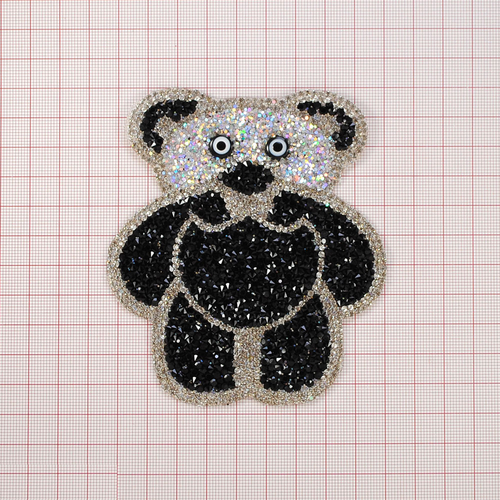 Аппликация клеевая стразы Мишка 11*9см, черный, белый, хамелеон, шт
