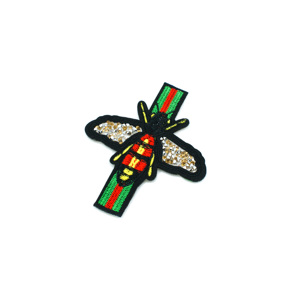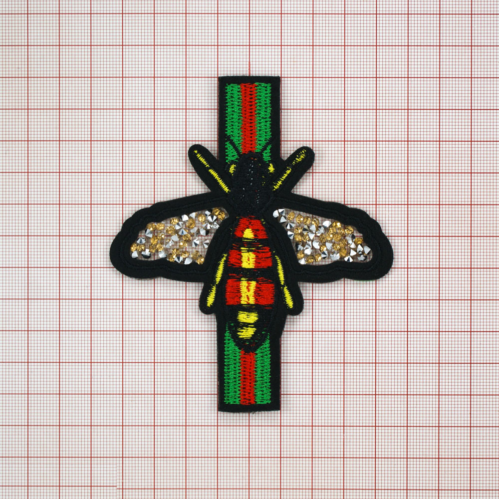 Аппликация клеевая стразы Оса 10,5*9 черный, красный, зеленый, желтый, камни золото шт