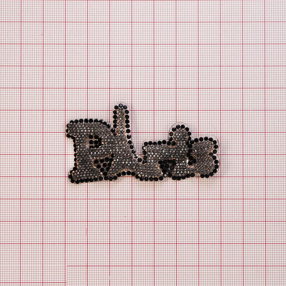 Аппликация клеевая стразы PARIS 7*3,5см, BLACK NICKEL, черные камни, шт