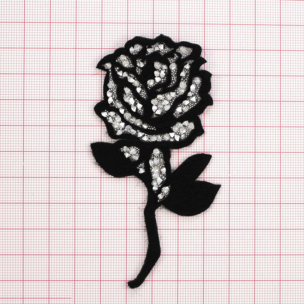 Аппликация клеевая стразы Роза 10*5см черный, камни белые, шт