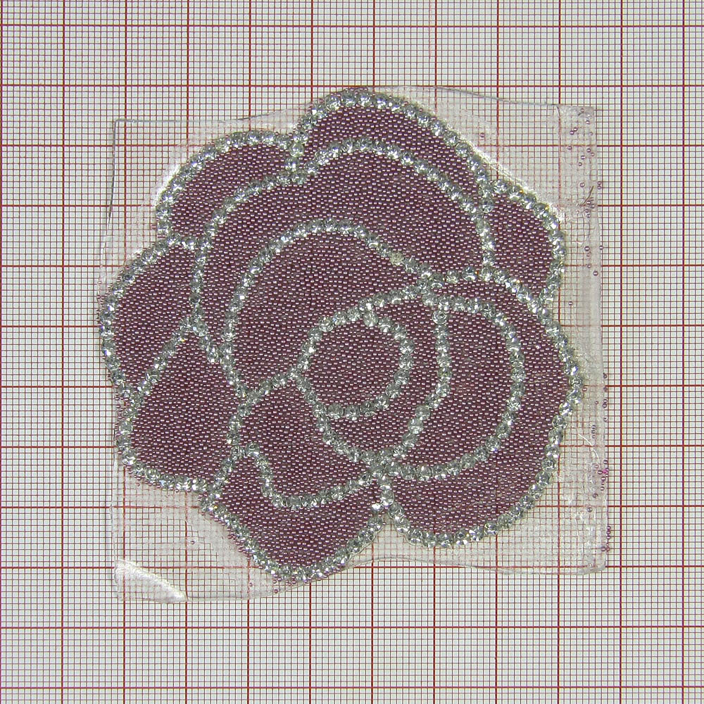 Аппликация клеевая стразы Роза 8*8см розовый Крупа, белые камни, шт