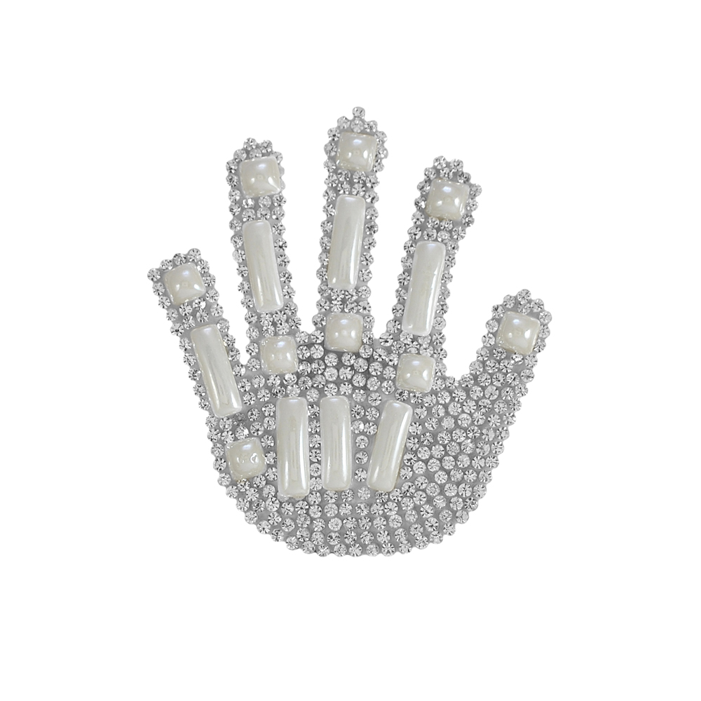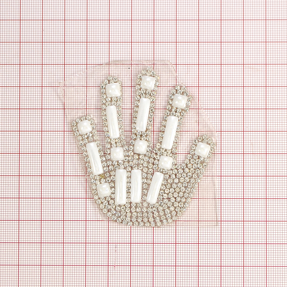 Аппликация клеевая стразы Рука левая 66*75мм белый прямоугольник 15*5мм, белые квадраты 6мм, белые 2мм, шт