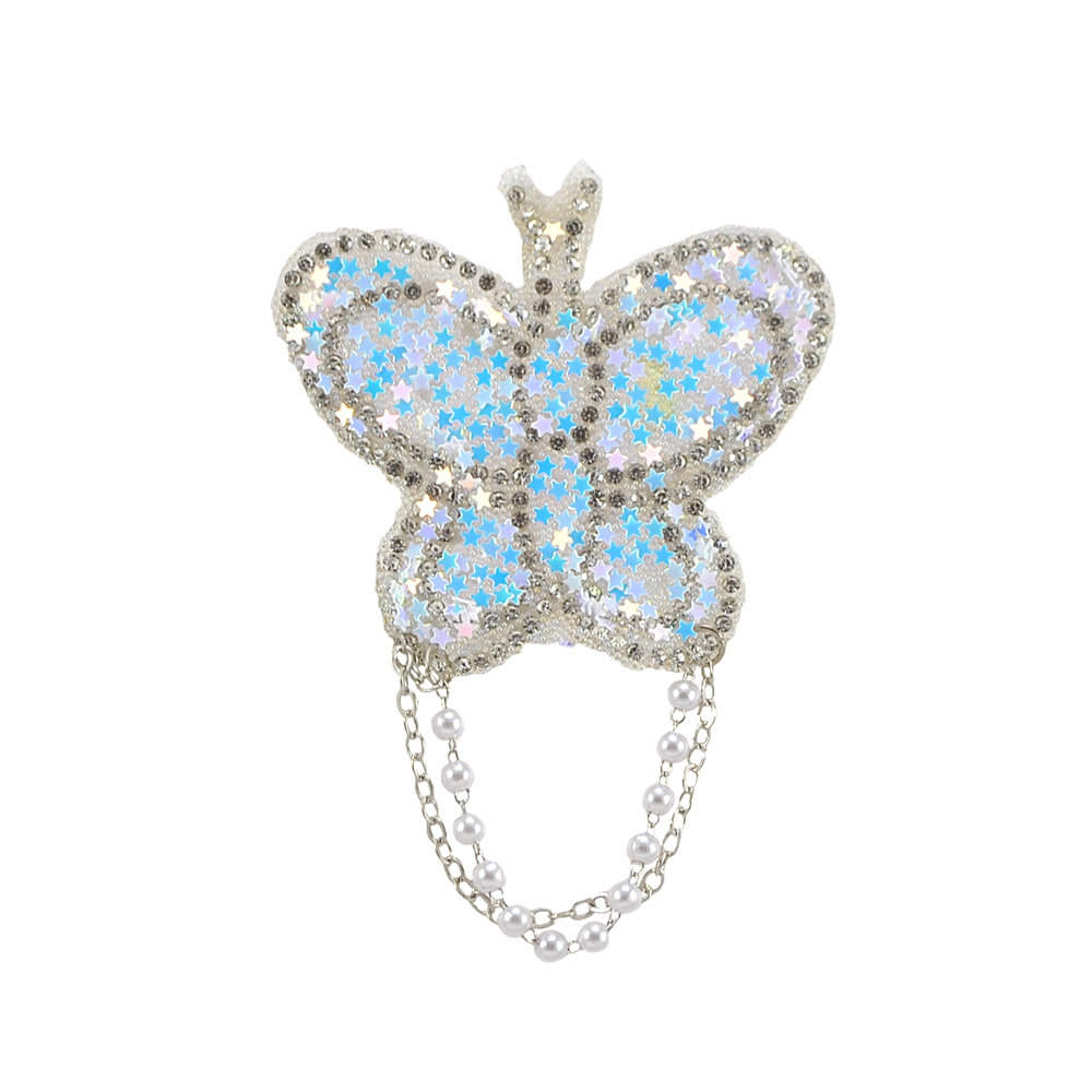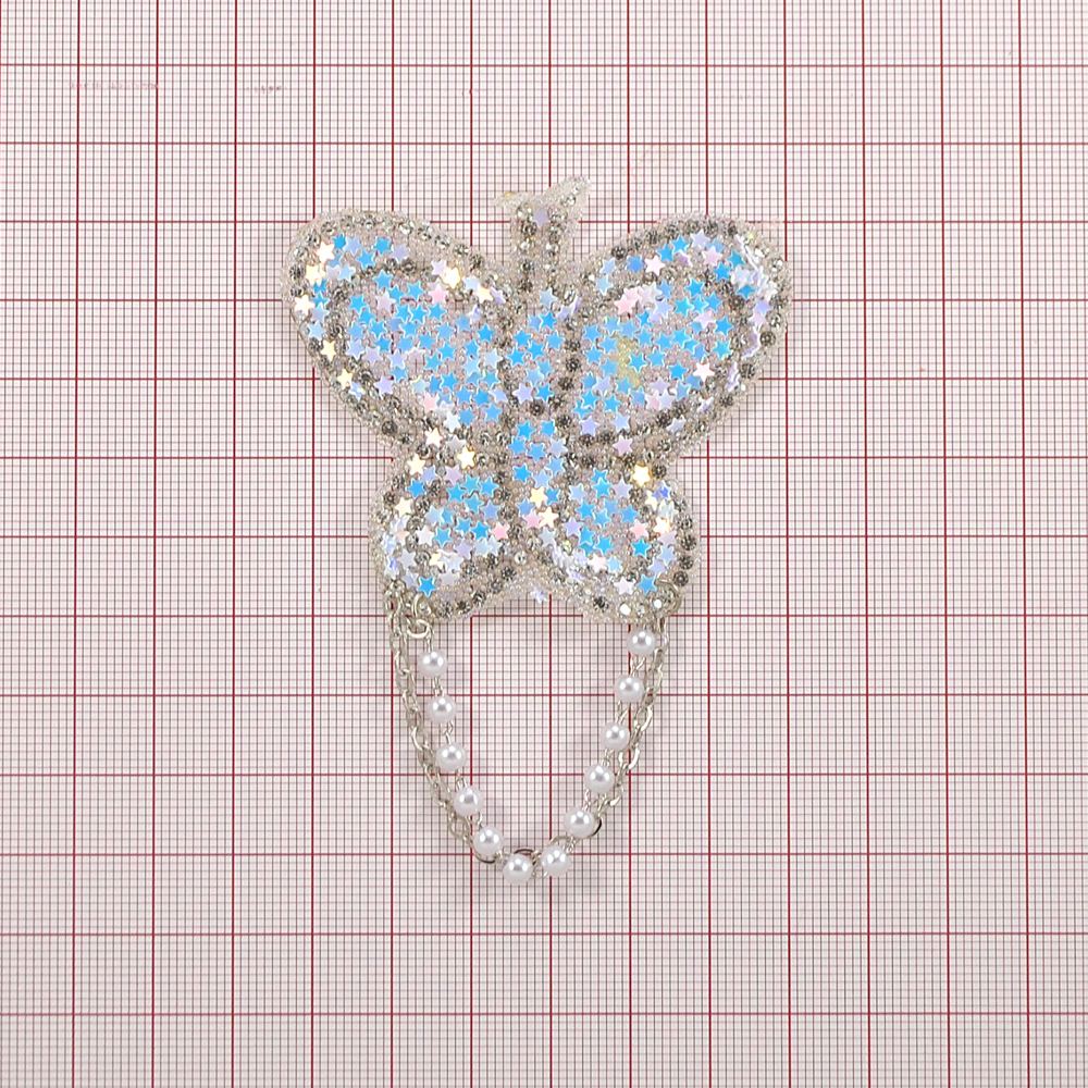 Аппликация клеевая стразы с подвесками Бабочка, 6,5*9,5см, желтый, голубой, розовый, белые камни, цепь, пайетки, хамелеон, шт.