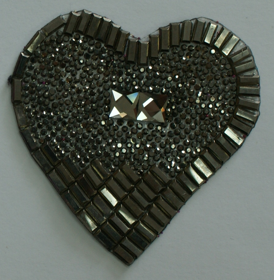 Аппликация клеевая стразы Сердце 72*74мм графит прямоугольный камень 7*3мм+Black diamond квадратный 8мм, графит 2мм, шт