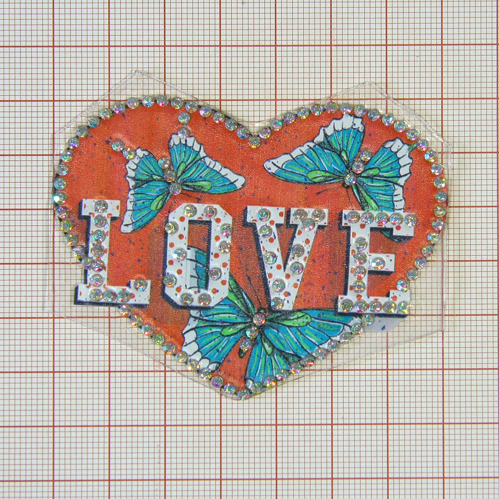 Аппликация клеевая стразы Сердце Love, бабочки 70*58мм красный, цветной рисунок, хамелеон камни, шт