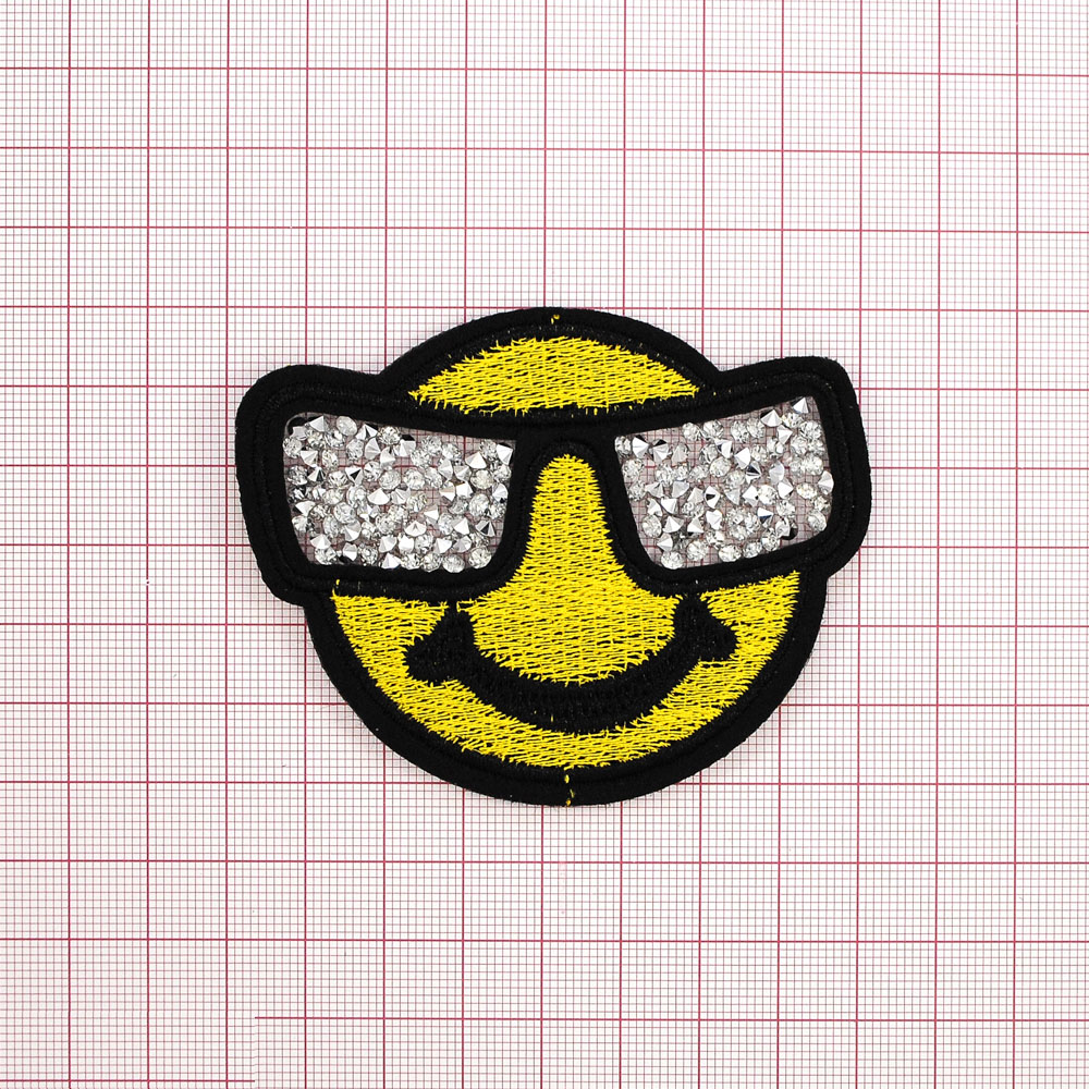 Аппликация клеевая стразы Smile в очках 6,5*8см желтый и черный, камни белые, шт