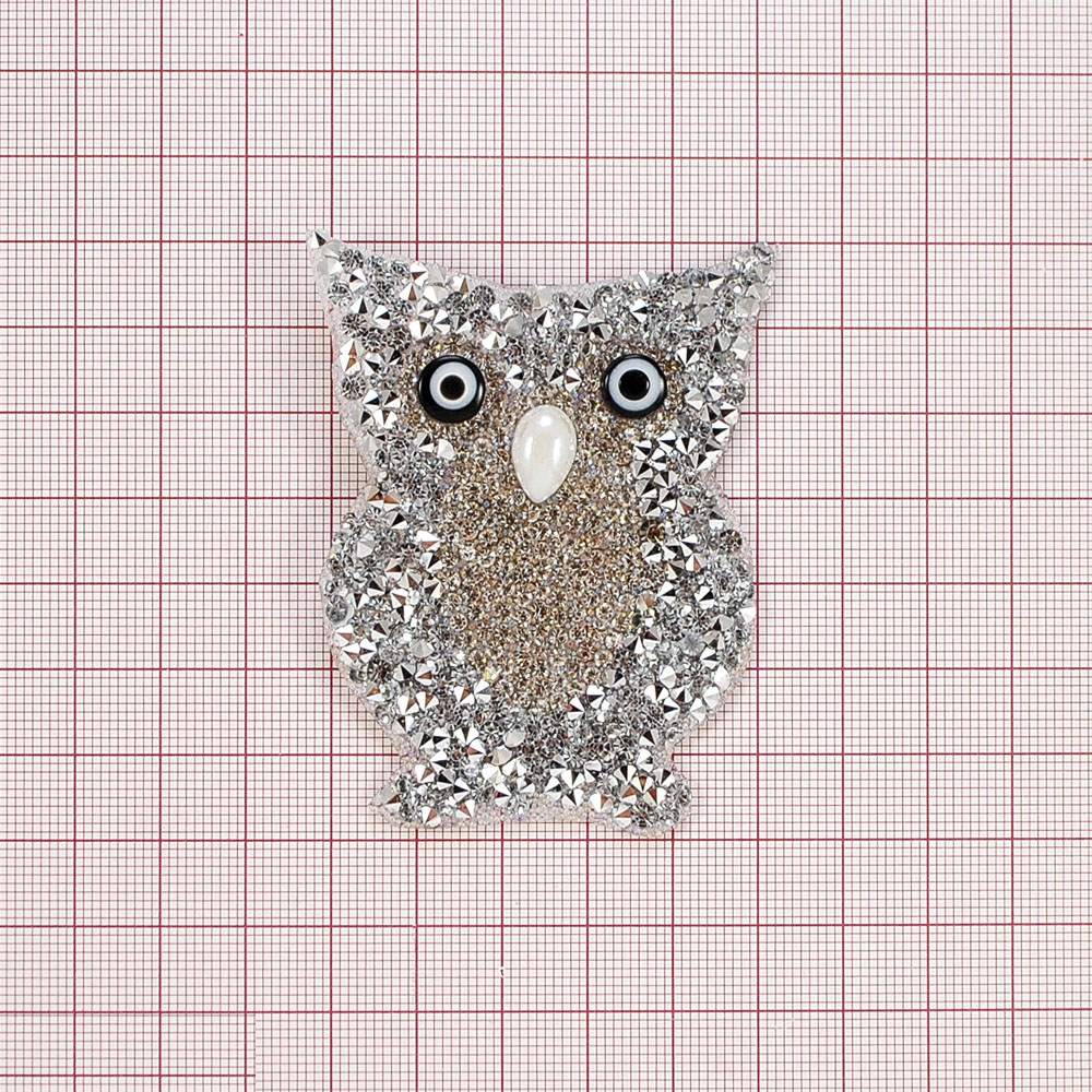 Аппликация клеевая стразы Сова 7*5,5см, белый, шт