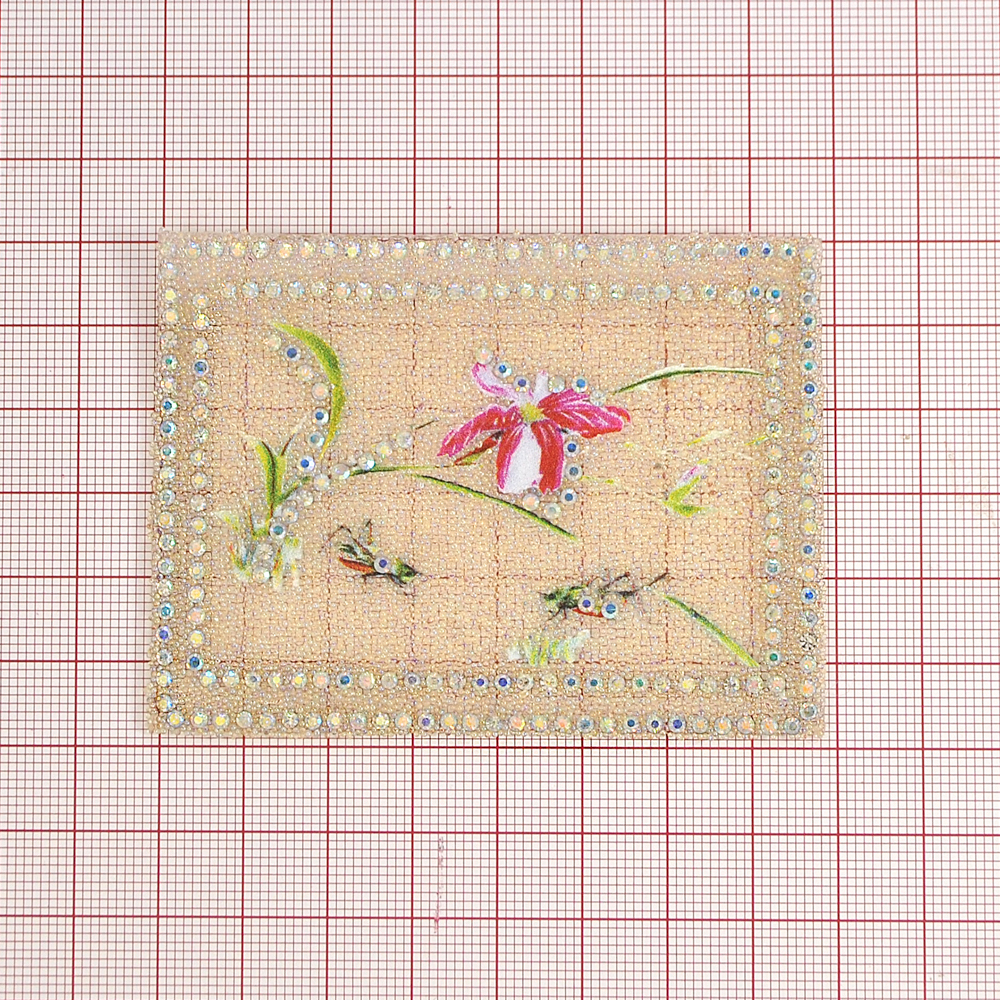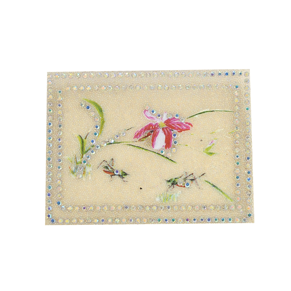 Аппликация клеевая стразы, стеклянная крошка Кузнечики и цветок 6*8см прозрачный бисер, хамелеон камни, шт