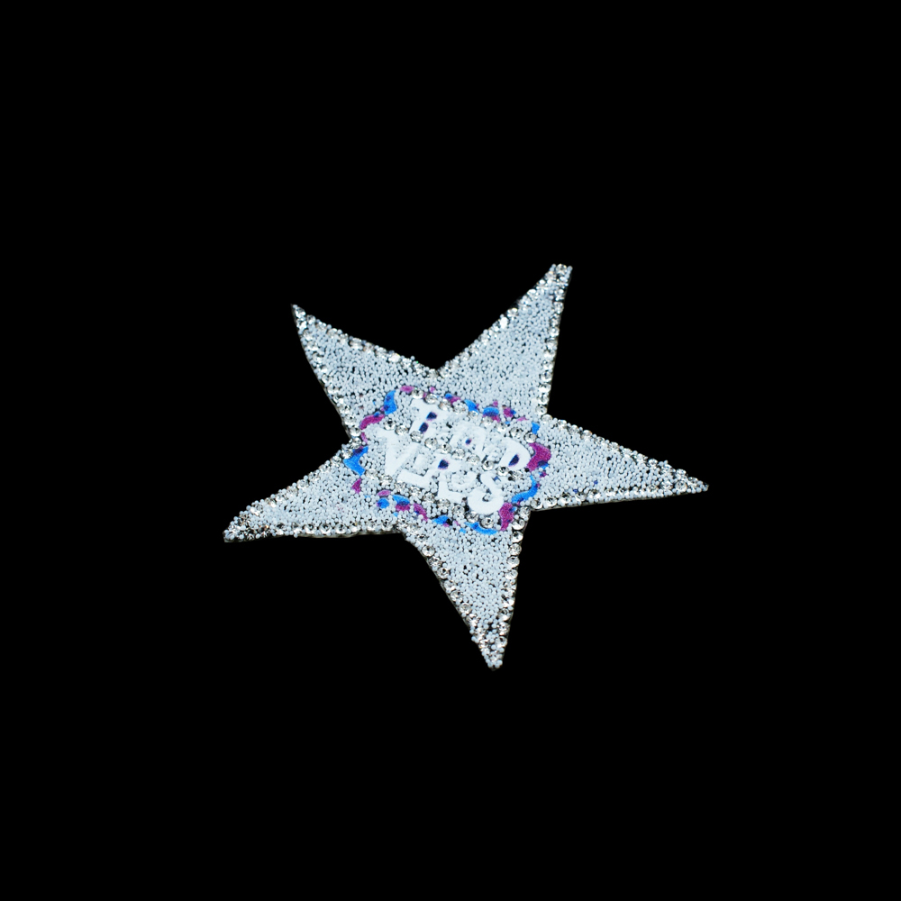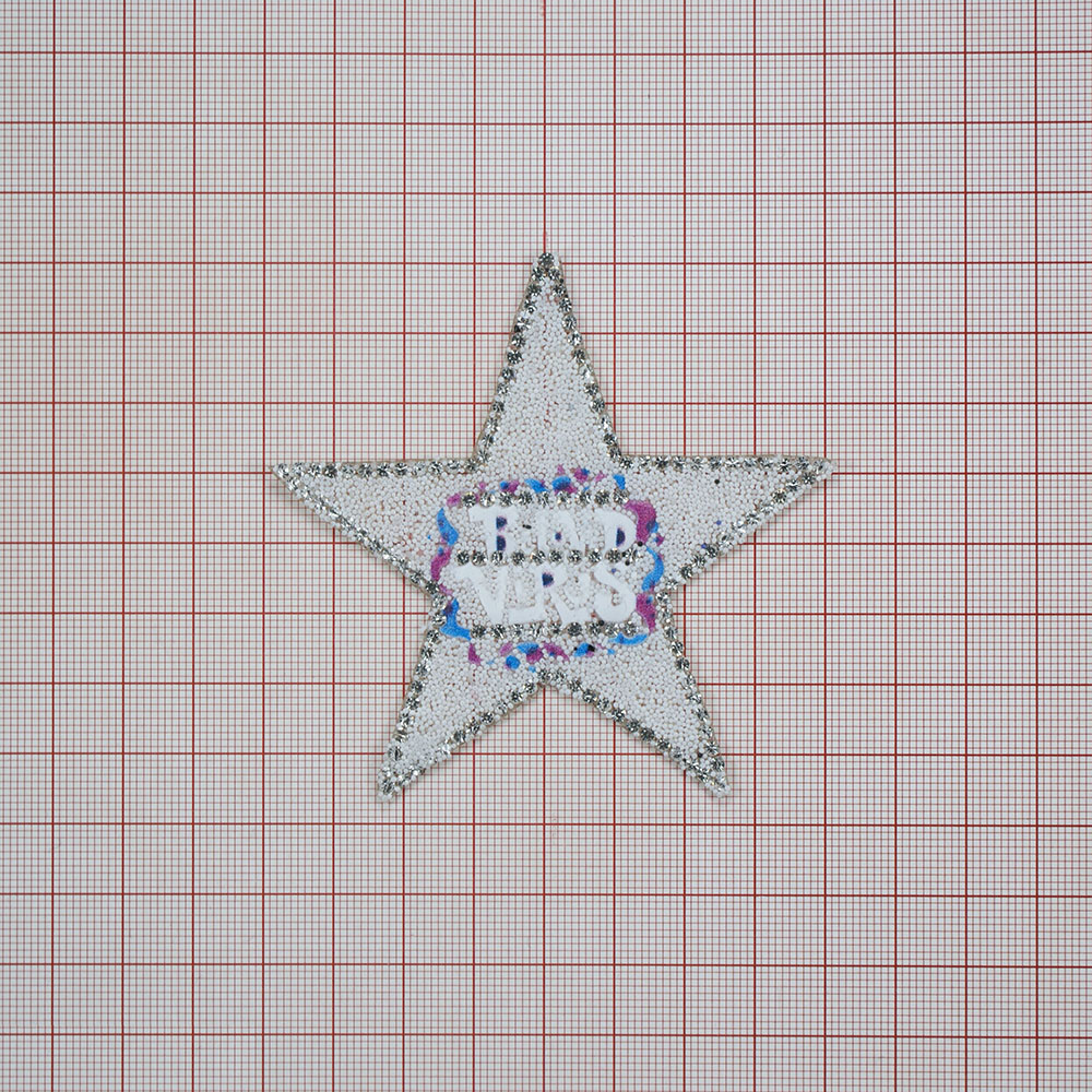 Аппликация клеевая стразы, стеклянная крошка Звезда с текстом 8*8см белый, черный, синий, бордовый, белые камни, шт