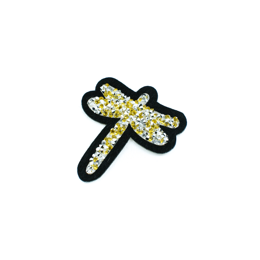 Аппликация клеевая стразы Стрекоза 6,5*7,5см черный, белые и желтые камни, шт