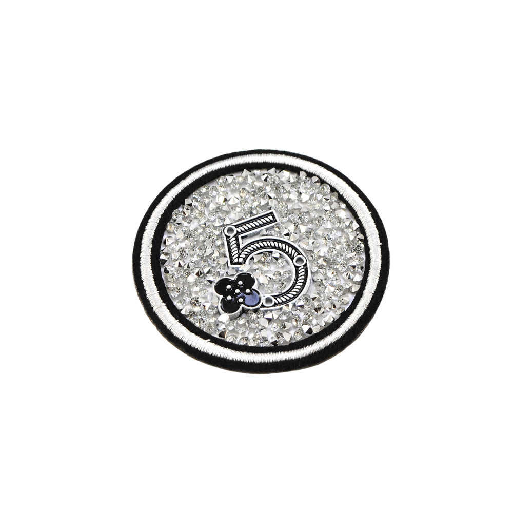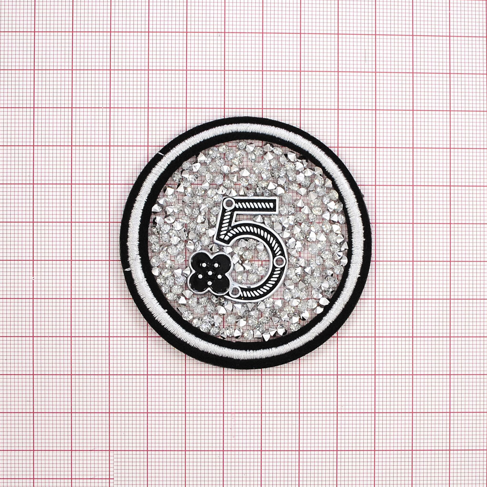 Аппликация клеевая стразы Цифра 5 - 6,5см белый, черный, камни белые, металл белый, черный, шт