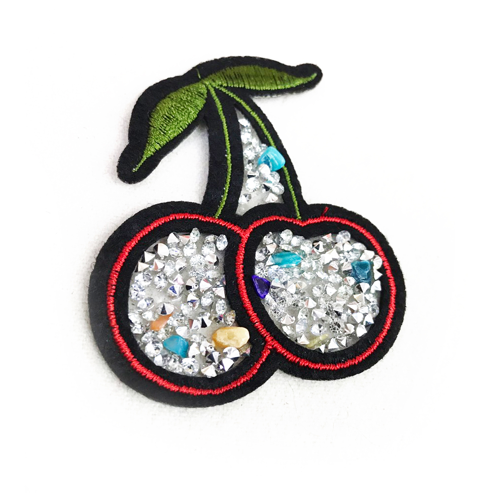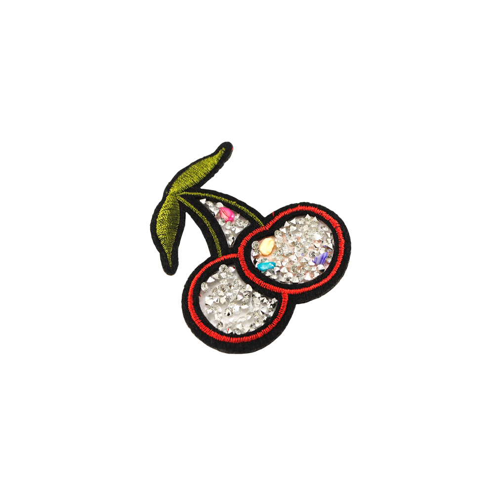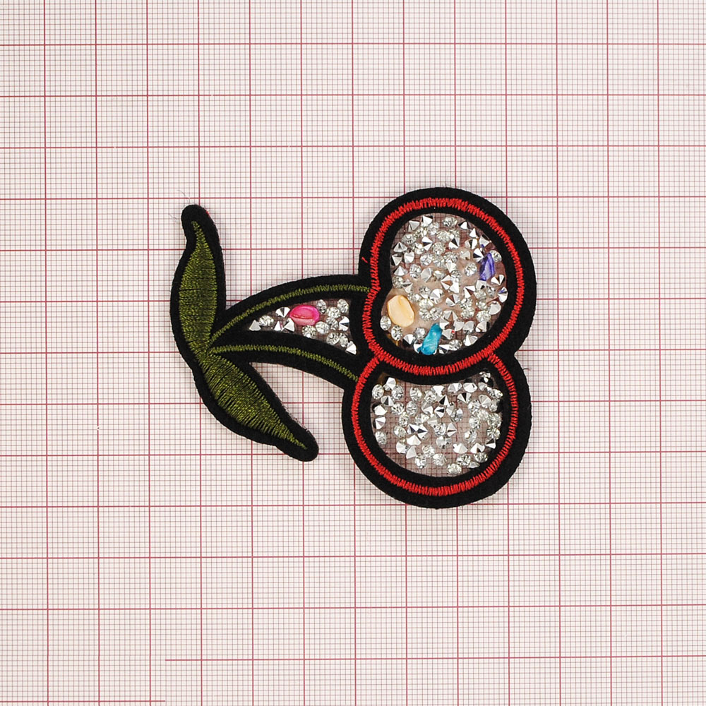 Аппликация клеевая стразы Вишенки 7*6см зеленый, черный, красный, камни белые, шт.
