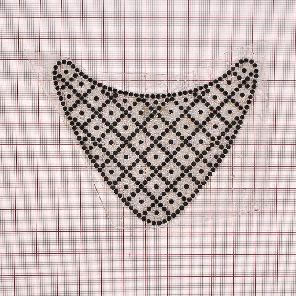 Аппликация клеевая стразы Ворот квадраты 98*80мм хамелеон мелкий бисер, черный камень 2мм, шт