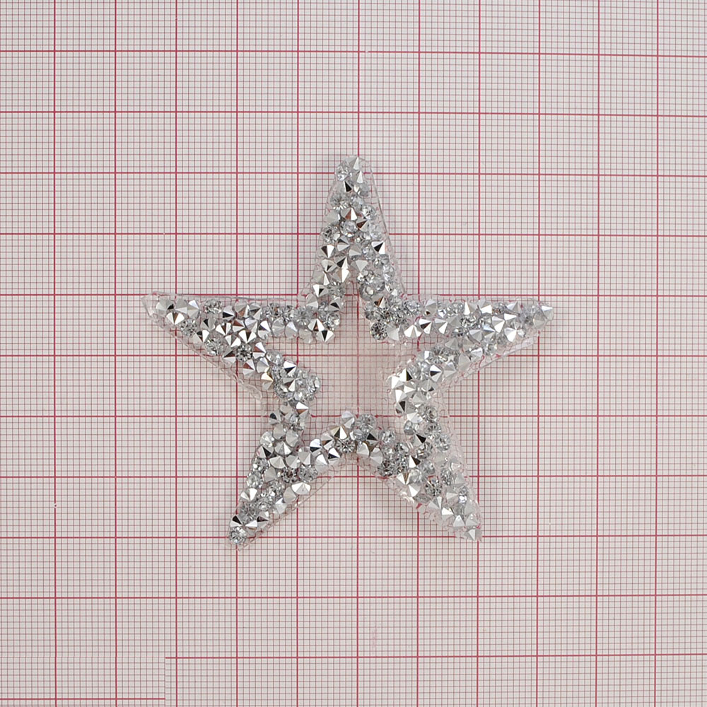 Аппликация клеевая стразы Звезда 6,5*6,5см, серебро, шт