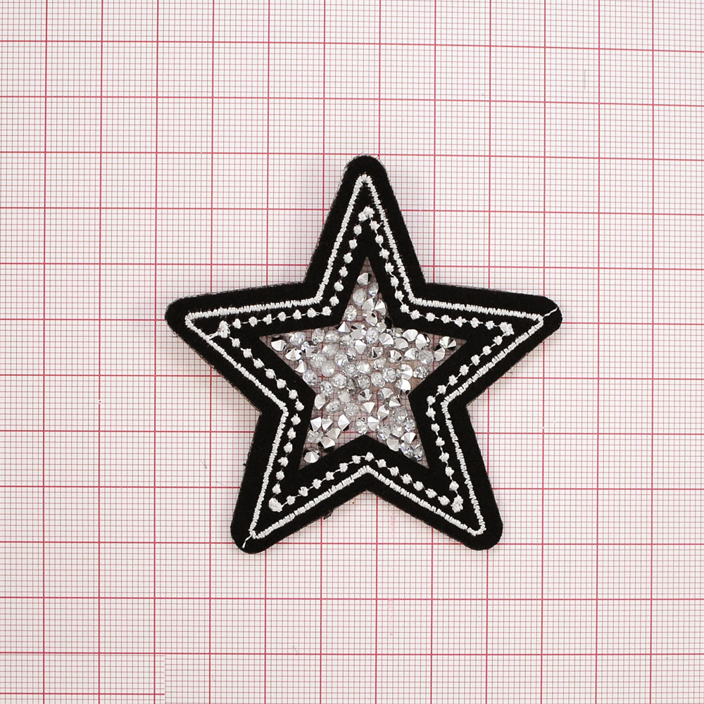 Аппликация клеевая стразы Звезда 7*7,5см белый, черный, камни белые, шт