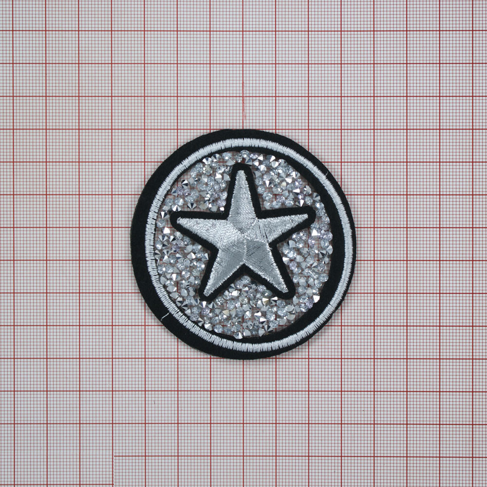 Аппликация клеевая стразы Звезда в камнях 7*7см черный, белый, белые камни, шт