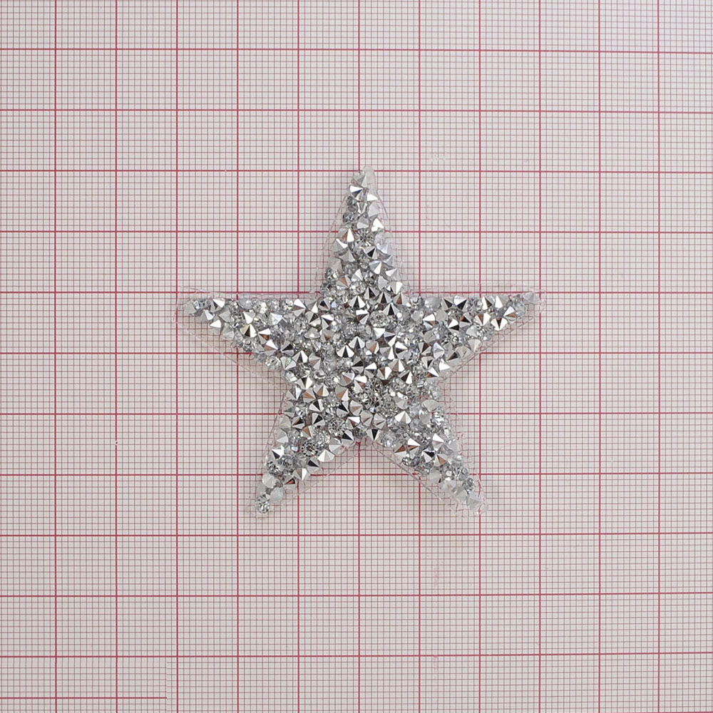 Аппликация клеевая стразы Звездочка 5,5*5,5см, серебро, шт