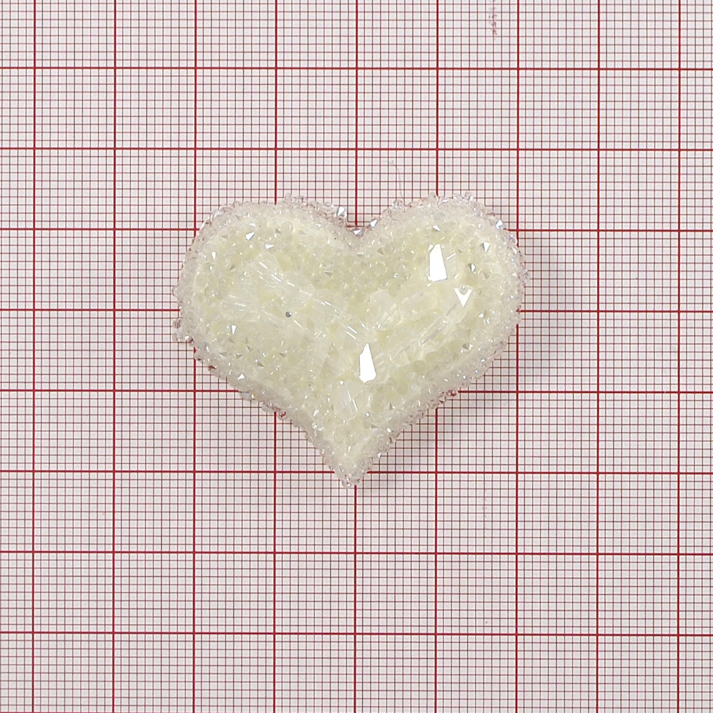 Аппликация со стразами Сердце, 4*4см, белый, шт