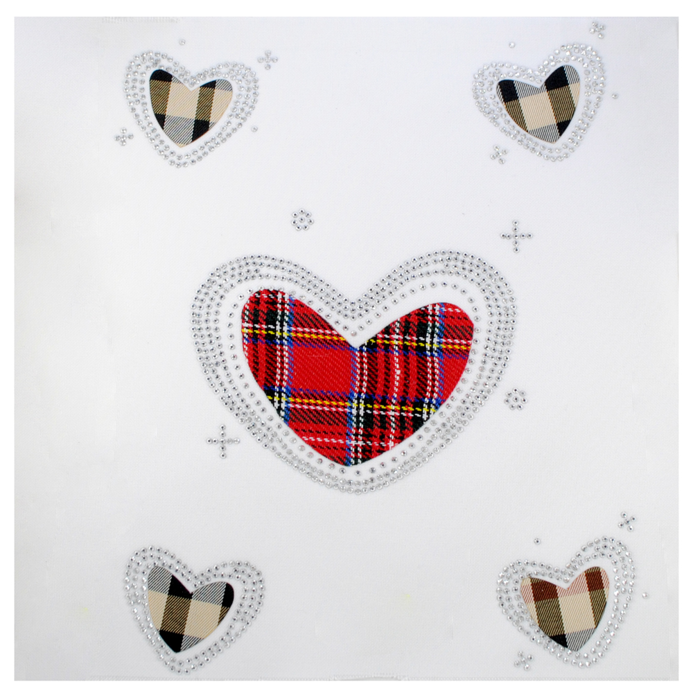 Термоаппл. из страз Сердца, 17,5*21,5см, серебро., кр.клетка, шт