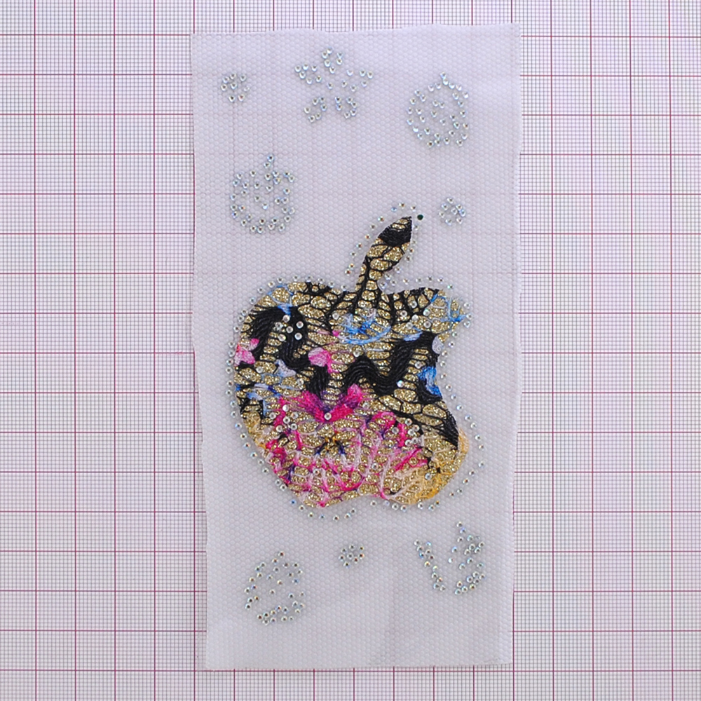 Термоаппликация тканевая принт Надкушенное яблоко со стразами, 14*6,5см, белый, желтый, голубой, розовый, шт