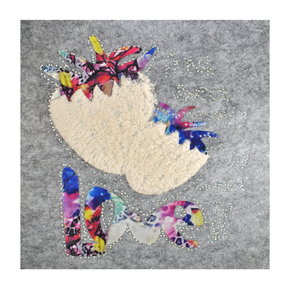 Термоаппликация тканевая со стразами 2 Клубники LOVE 22,5*23,5см бежевый, цветной, шт