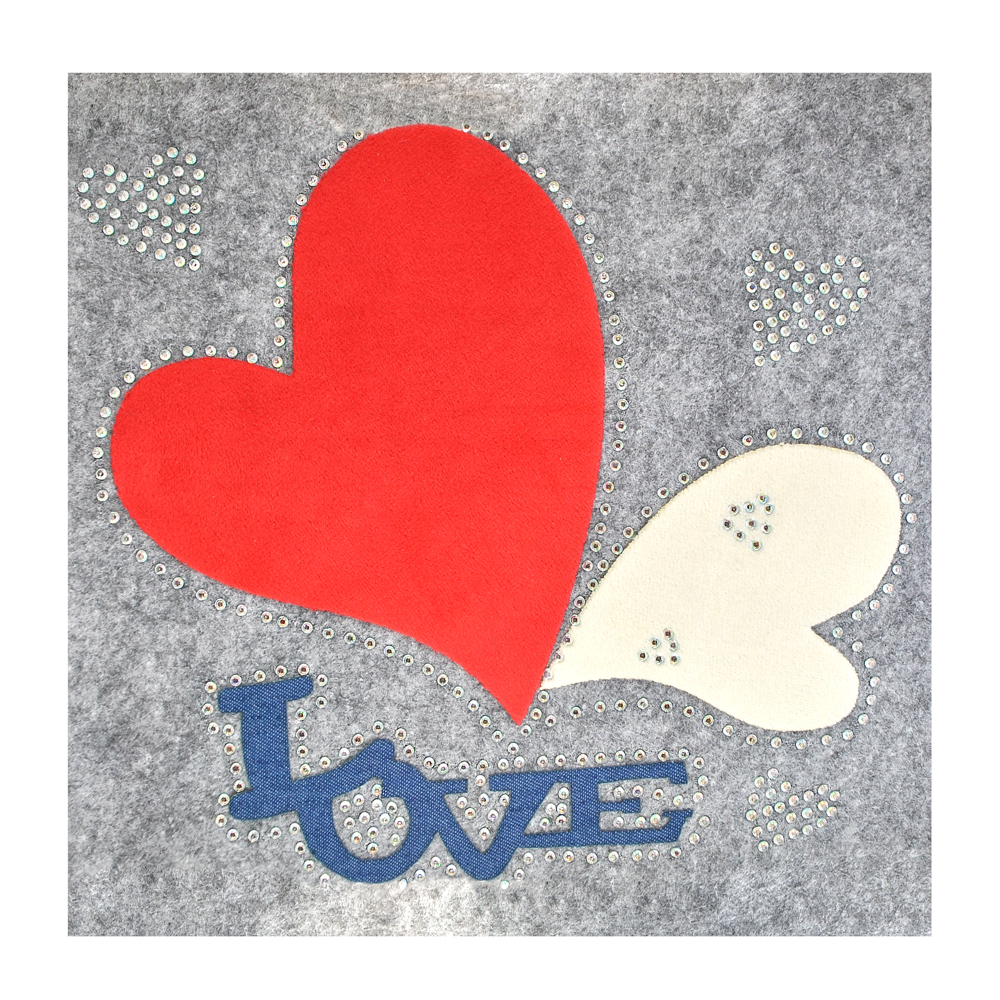 Термоаппликация тканевая со стразами LOVE 2 Сердца 23*22см красный, бежевый, синий, шт