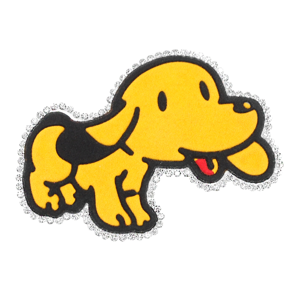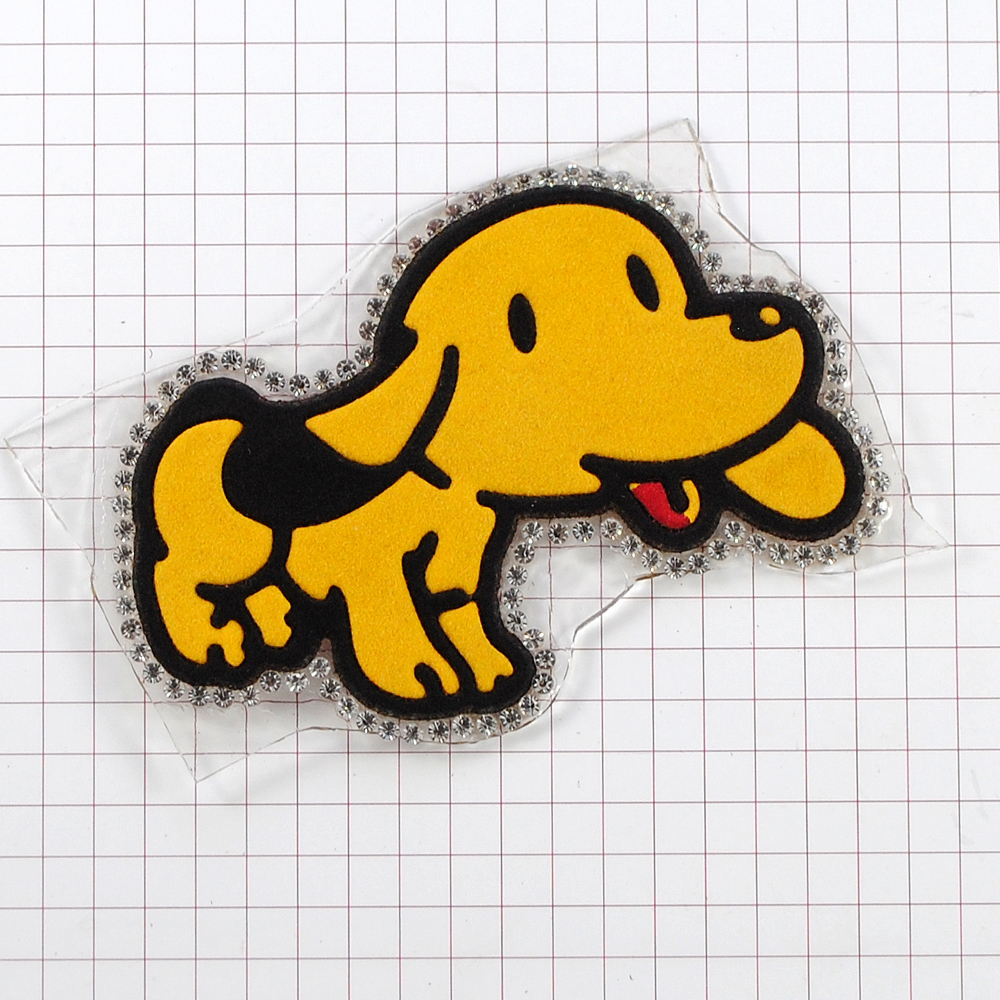 Термоаппликация тканевая стразы велюр Щенок 7,5*5,8см желтый, черный, белые камни, шт