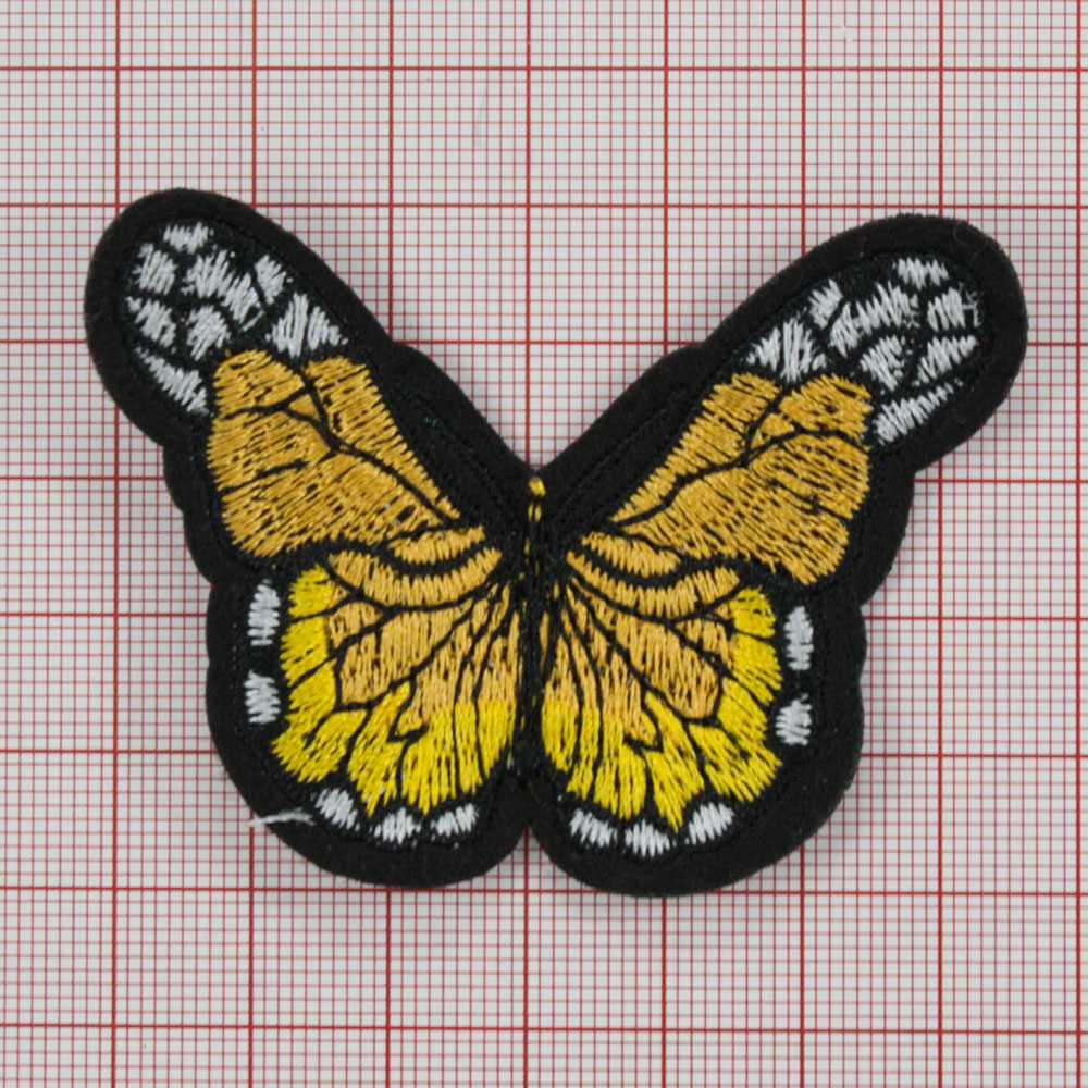 Аппликация клеевая вышитая Бабочка желтая 7*5,5см, желтый, белый, черный