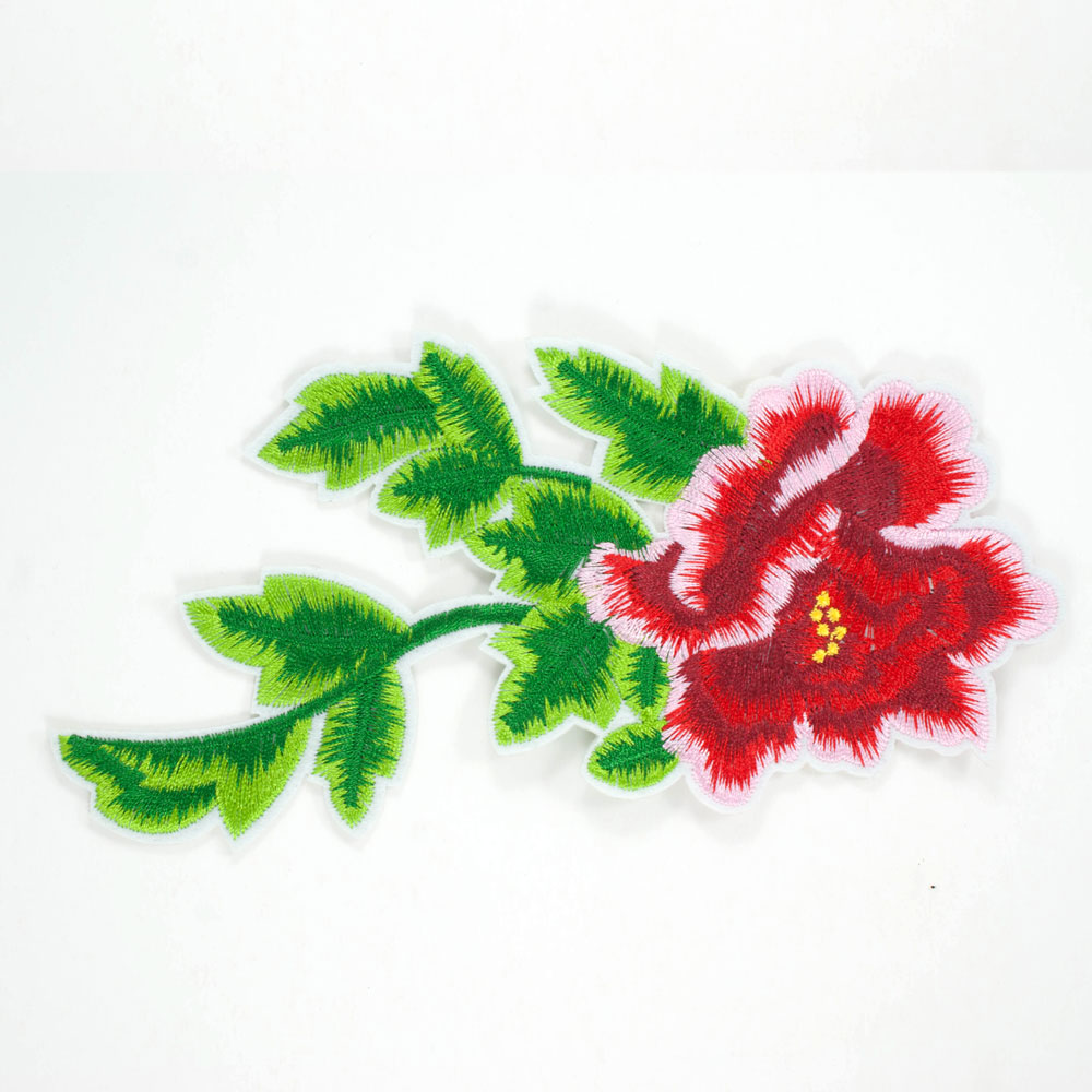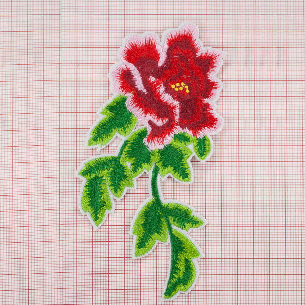Аппликация клеевая вышитая Гвоздика 17*9,3см, красный, зеленый, белый, салатовый