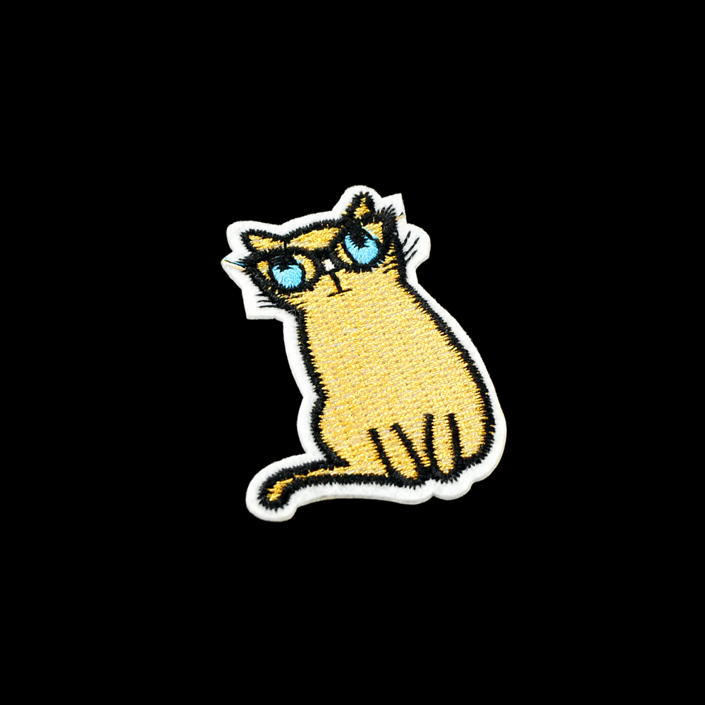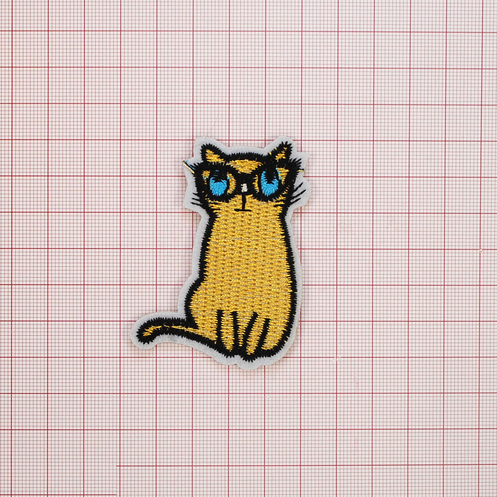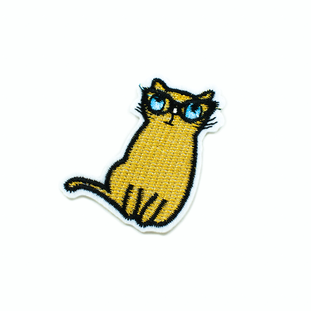 Аппликация клеевая вышитая Кот в очках 4,5*6,5см черный, белый, голубой, желтый, шт