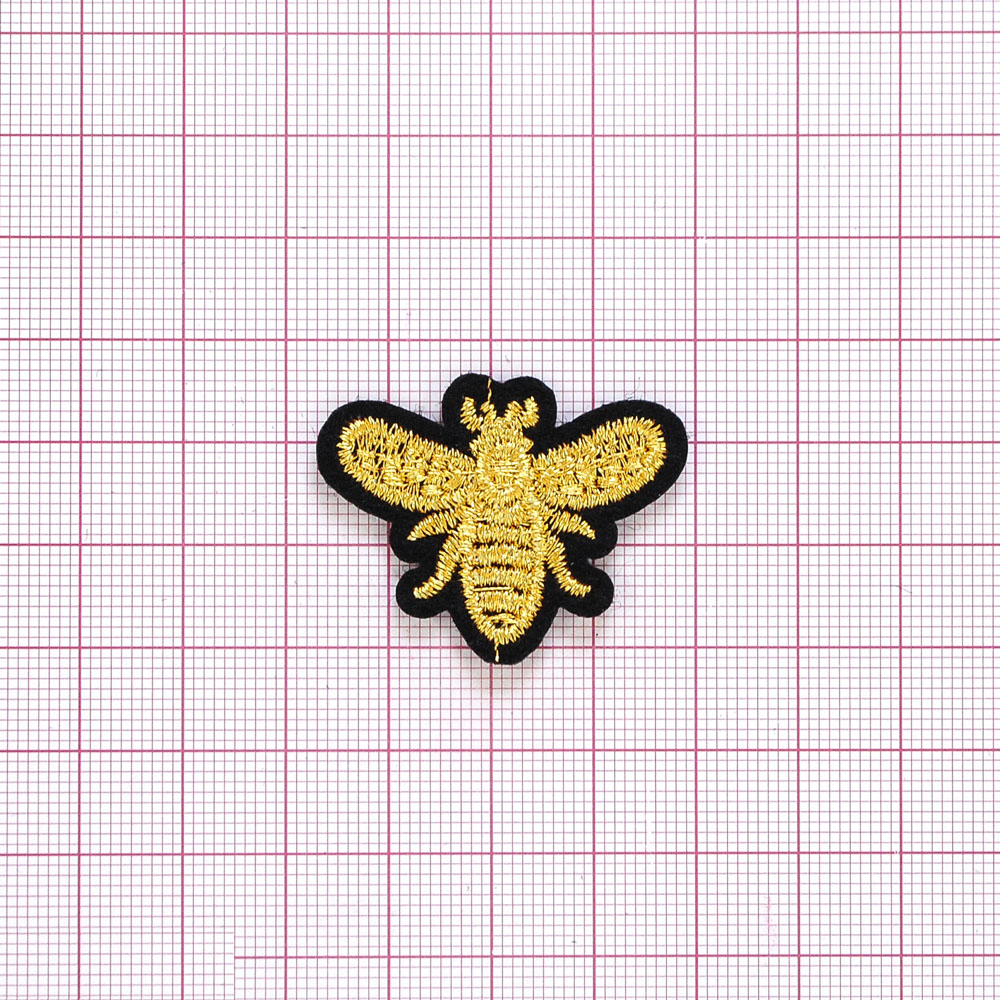 Аппликация клеевая вышитая Муха черно-золотая 3,5*3см черный, золото, шт