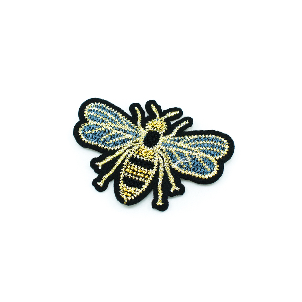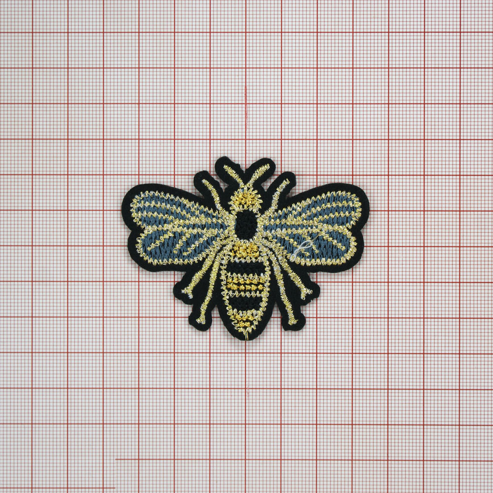 Аппликация клеевая вышитая Оса 7*5см черный, желтый, голубой, шт