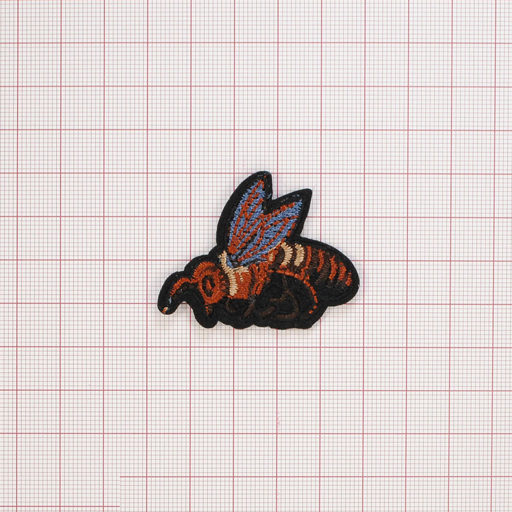 Аппликация клеевая вышитая Пчела коричневая 4,5*4см черный, коричневый, синий, белый, шт