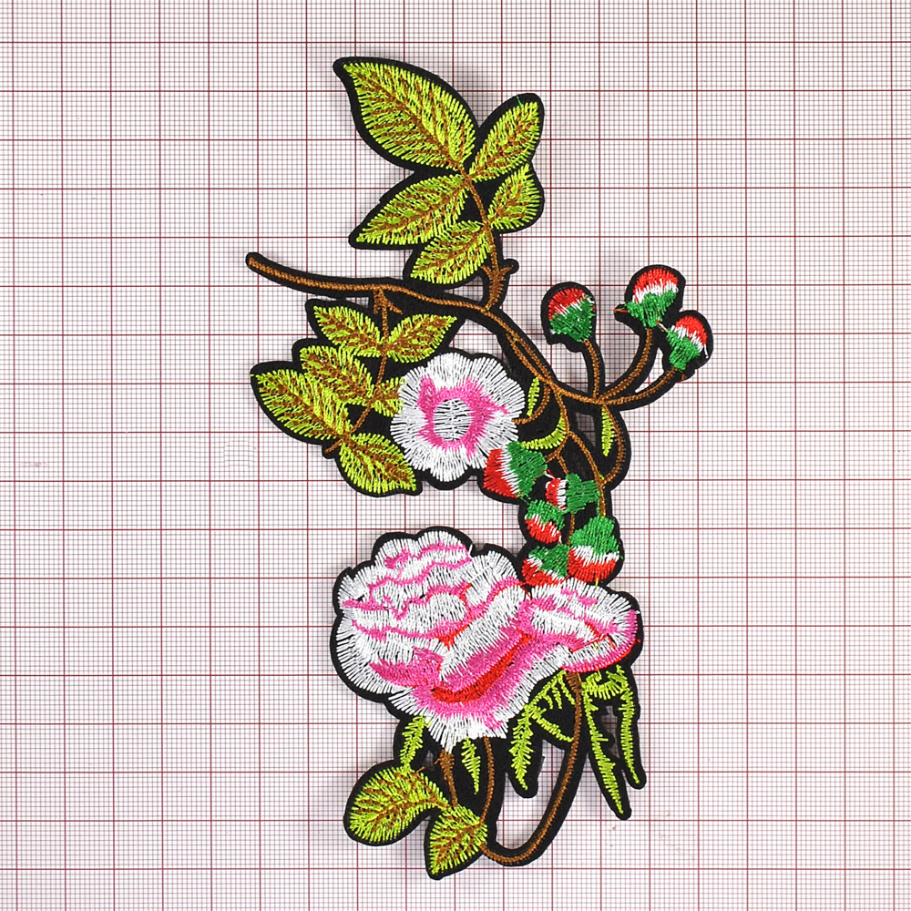 Аппликация клеевая вышитая Роза Блейз 17*9,5см нежный розово-белый цветок, шт