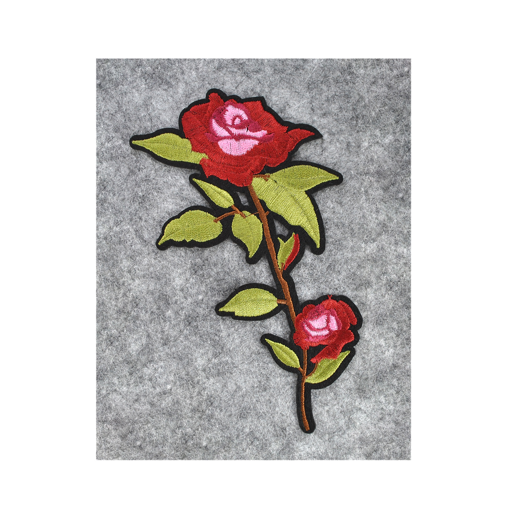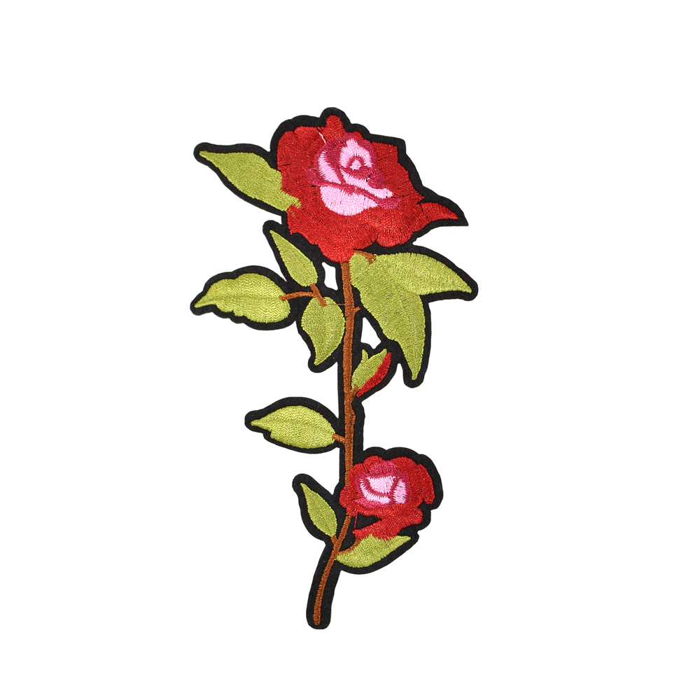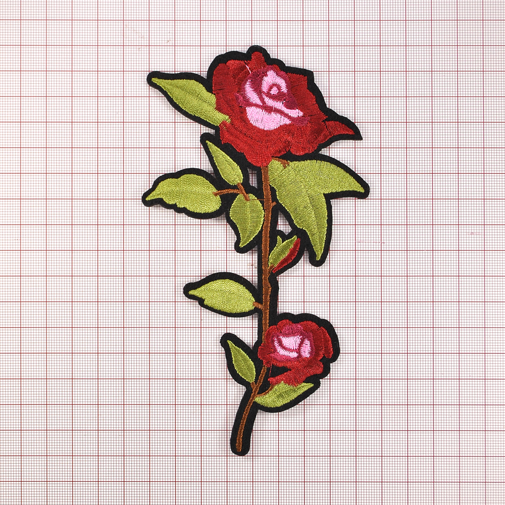 Аппликация клеевая вышитая Роза Нью Доун 17*9,8см бордовый, розово-красный цветок, шт