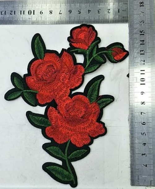 Аппликация клеевая вышитая Роза Зоммервинд 16*13см темно бордовый цветок, шт