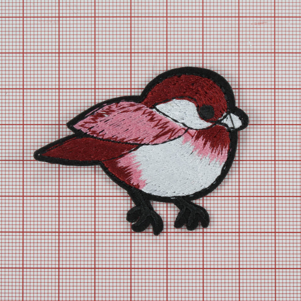 Аппликация клеевая вышитая Воробей бордовый 6*4,6см, бордовый, розовый, белый, черный