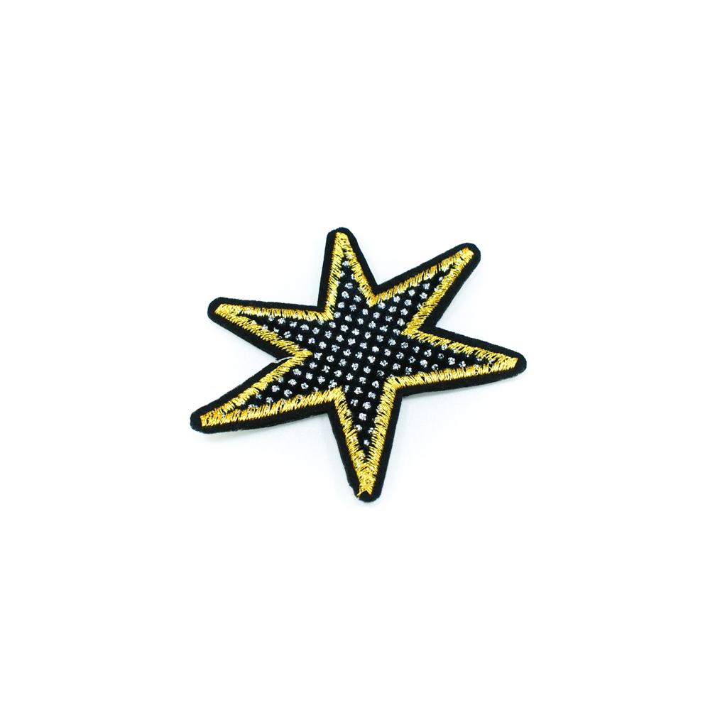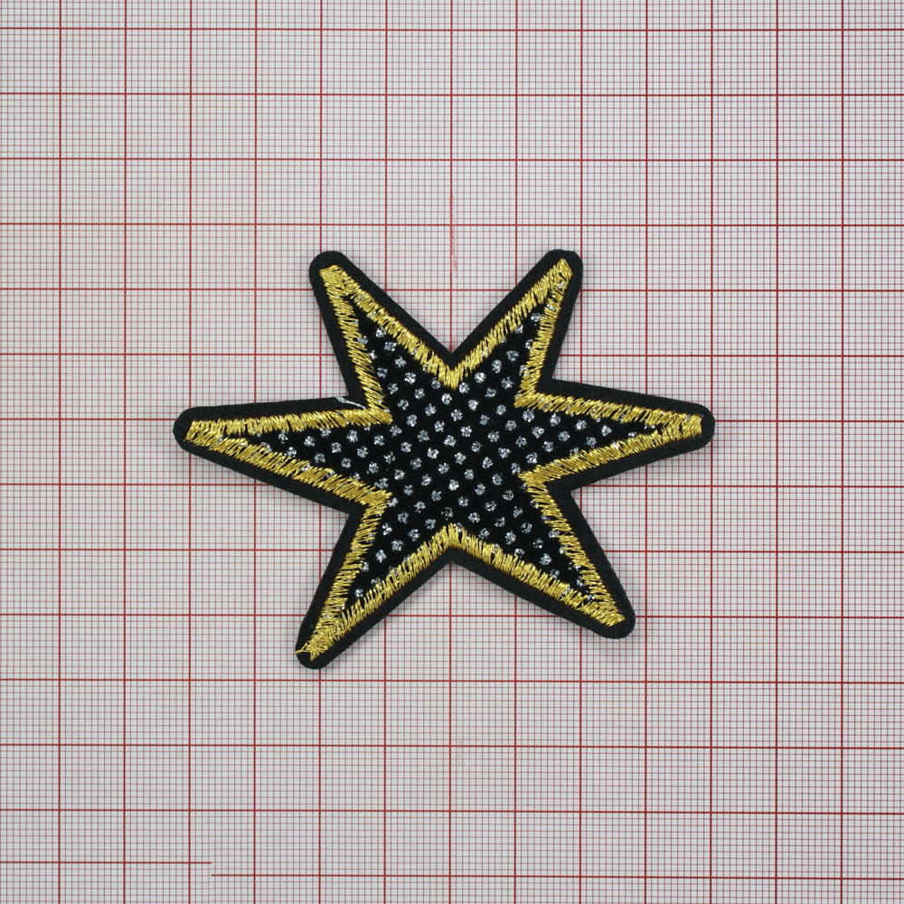Аппликация клеевая вышитая Звезда 6*8,5см черный, желтый, шт