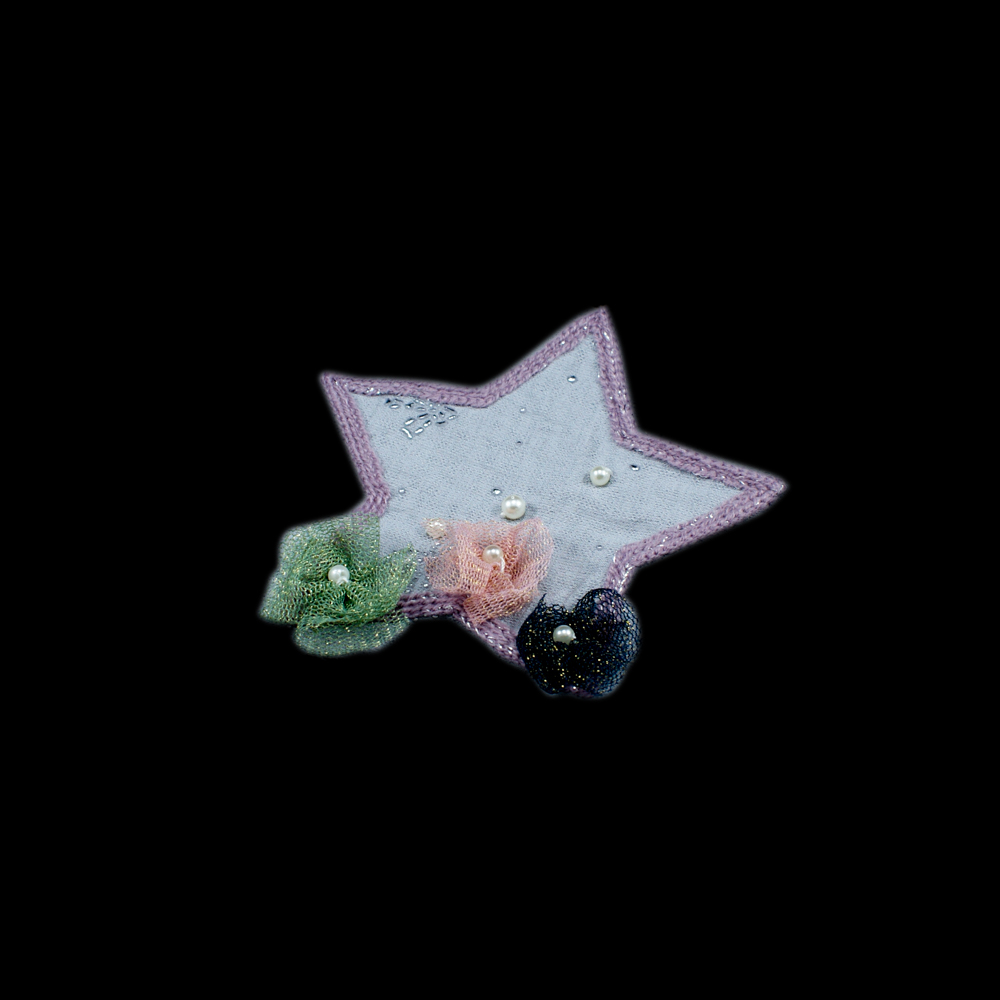 Аппликация кружевная пришивная Звезда и 3 банта 12,5*14,5см серый, сиреневый, черный, оранжевый, зеленый, перламутровые бусины, шт
