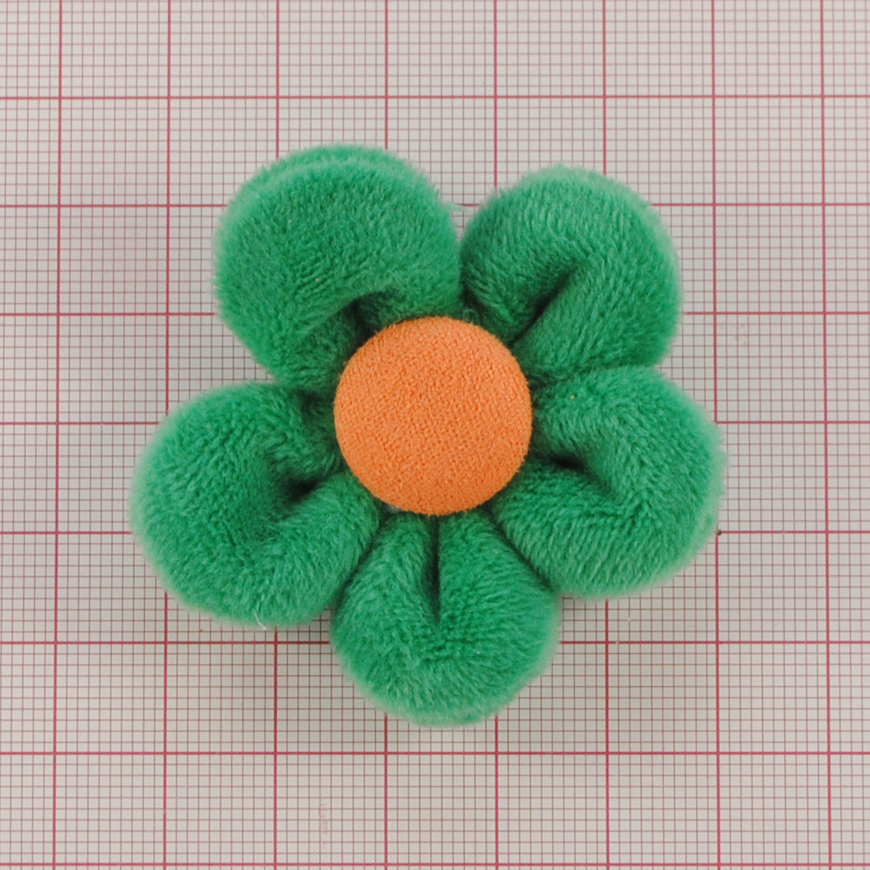 Аппликация тк. приш. дет. плюшевый цветок 5*5см, зелен., оранж., шт
