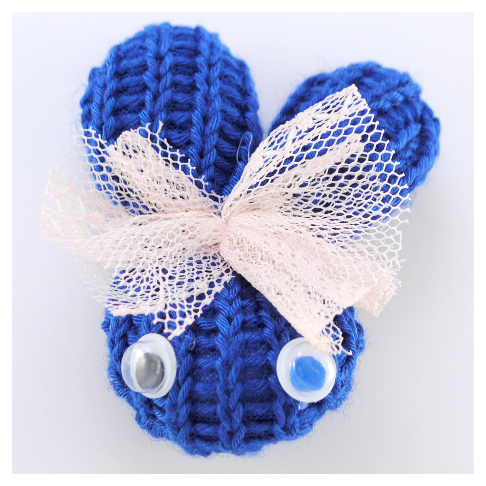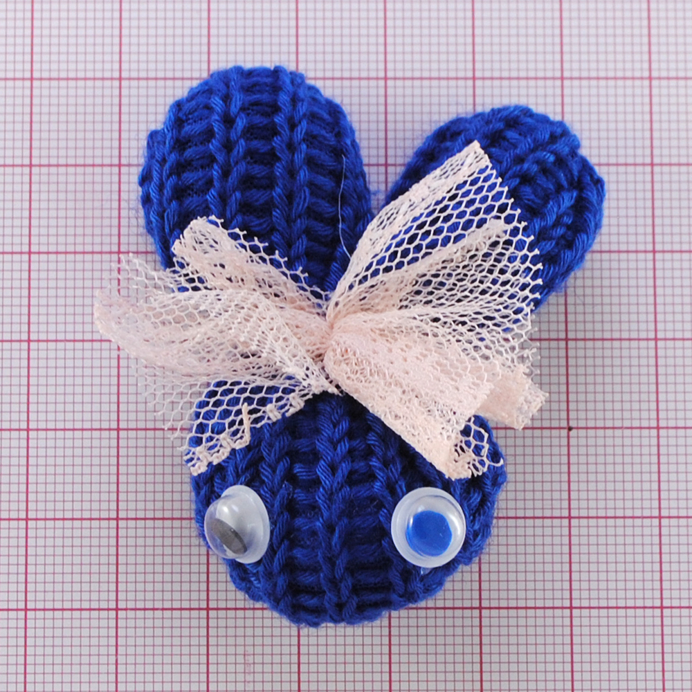 Аппликация тк. приш. дет. зайчик вязаный 4*6см, син., роз., шт
