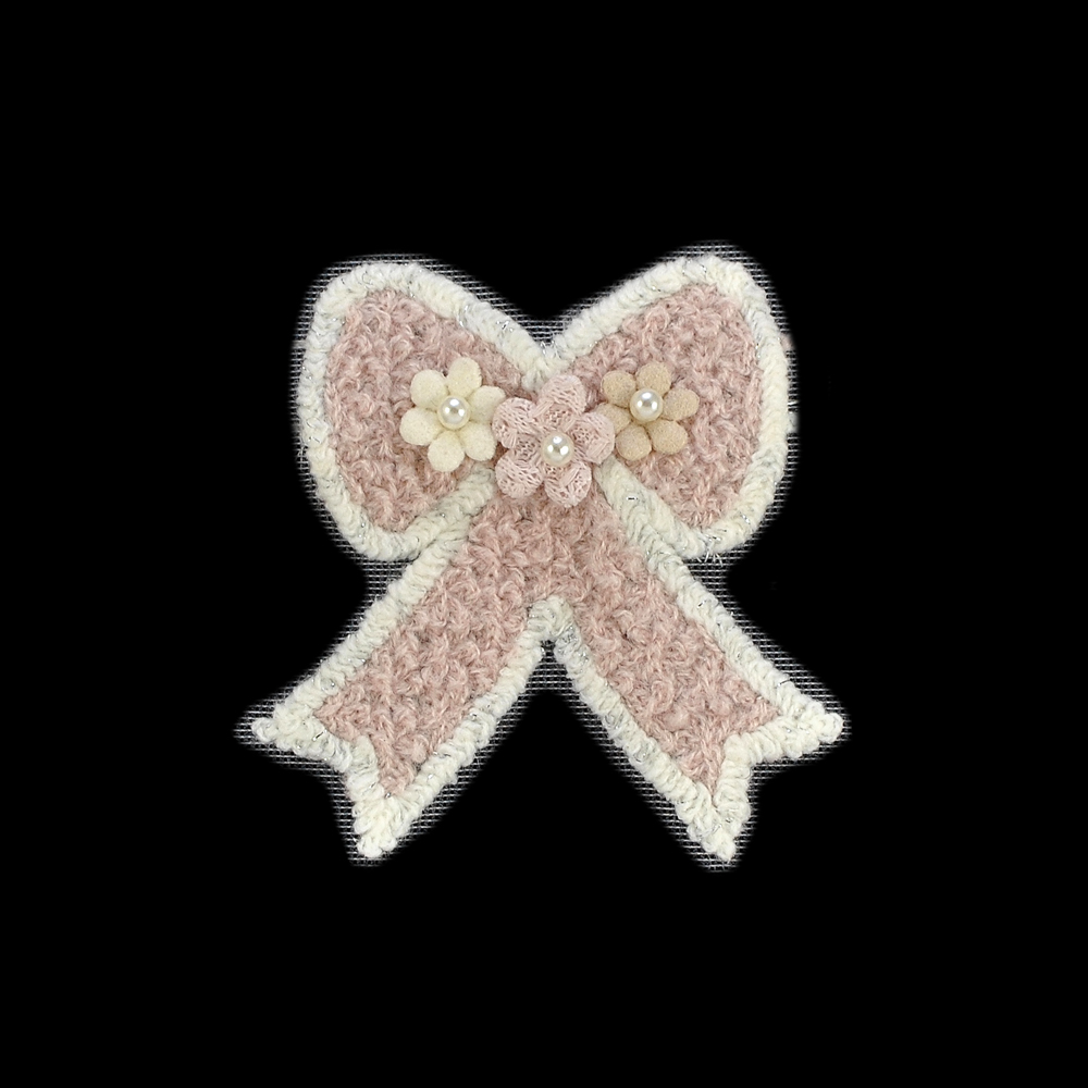 Аппликация вязаная пришивная Бант, 9*8,5см, белый, розовый, шт