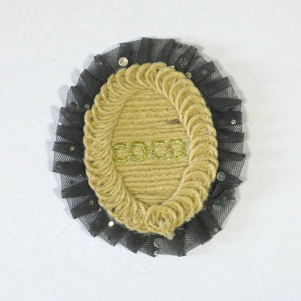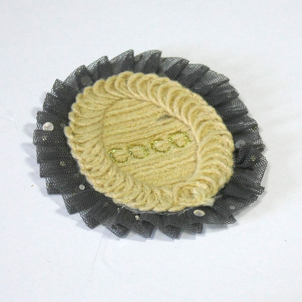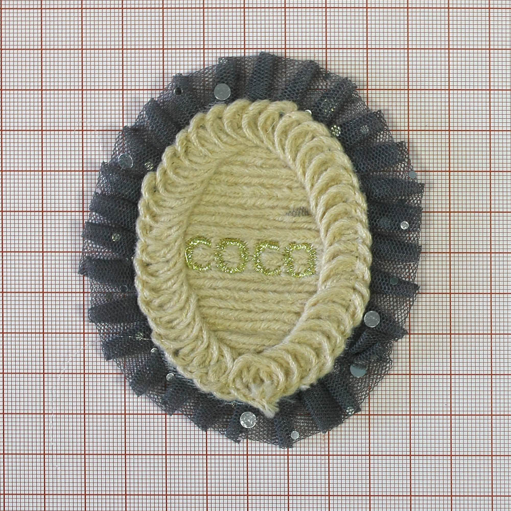 Аппликация вязаная пришивная Овал СОСО 8*9см бежевый, серебряный, золотой люрекс, шт