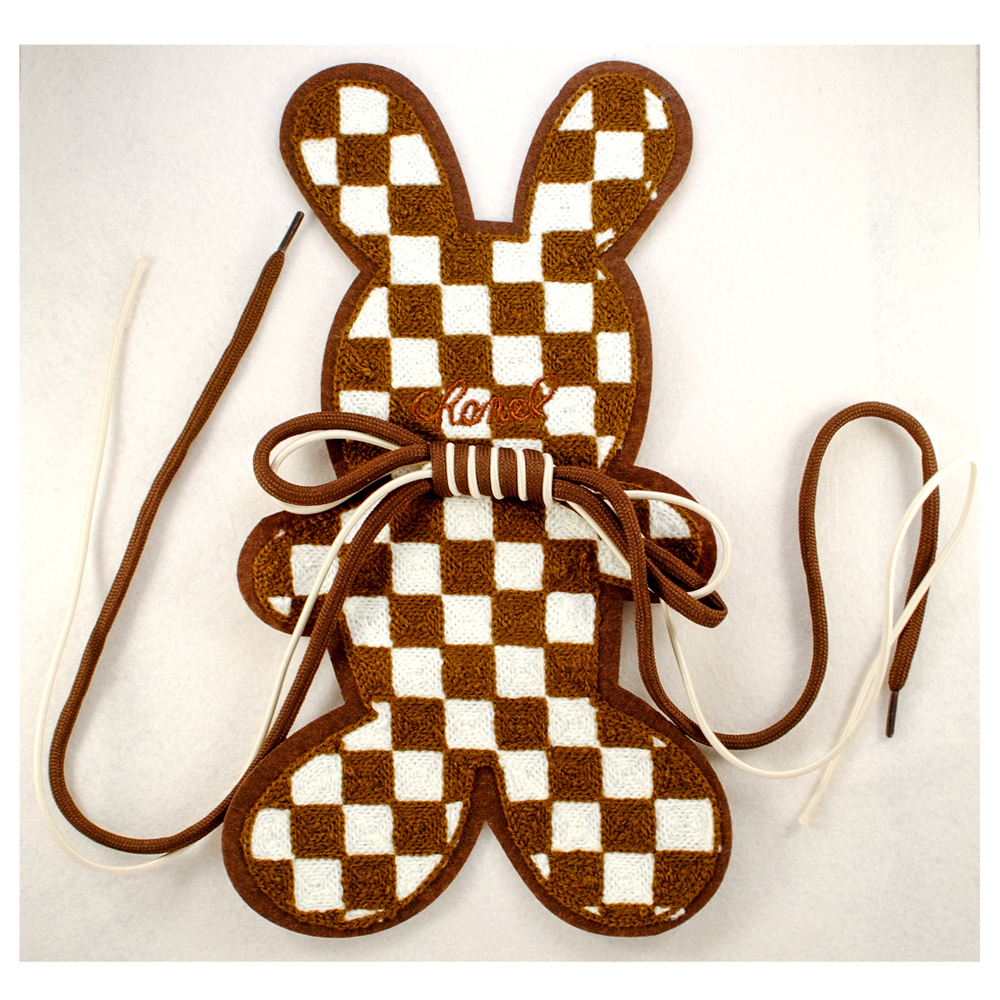 Нашивка вязан. пришив. зайка шахмат., 25*14см, корич.,бел., шнуровка, шт